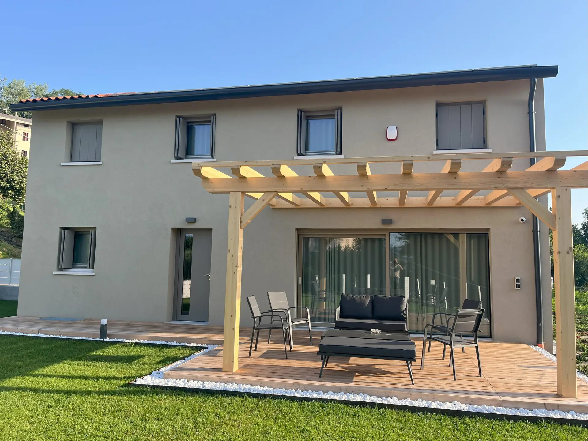 Works to complement a wooden log house can be very significant financially. Normally, the works include simple ground leveling, formation of pedestrian or driveway paths, fencing, and formation of parking areas. However, retaining walls or reinforced earth can be provided if the terrain requires it. Gardening can also be a basic activity by targeting low-maintenance perennials but automatic watering is often required, and grass cutting with robots.