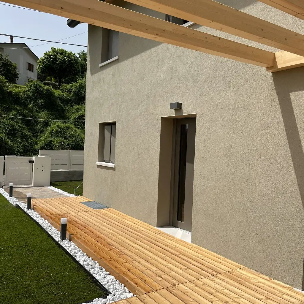 Nella campagna del retroterra veneziano nel comune di Martellago abbiamo realizzato questa piacevole casa in legno a un piano in stile classico. Il legno strutturale Il legno è impiegato è l’X Lam ed è utilizzato per l’intera struttura dell’abitazione ed è a vista sul tetto e nella capriata del portico. Il legno strutturale non comporta […]